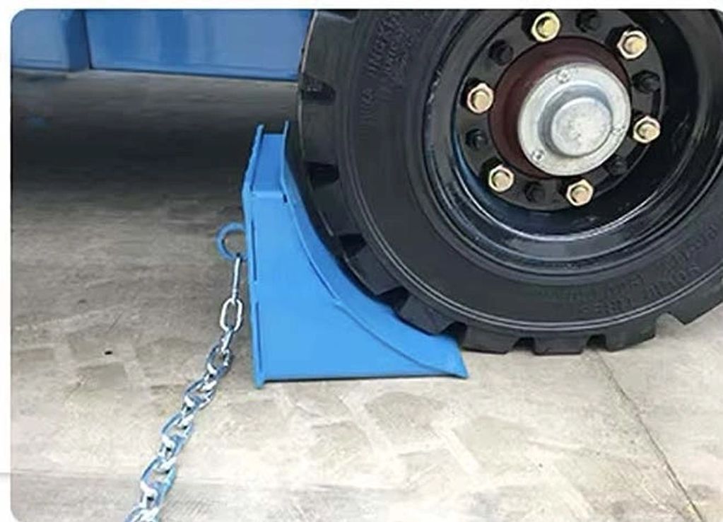 To stabilize the wheels while ramp working. Guarantee forklift and worker move safety on ramp.